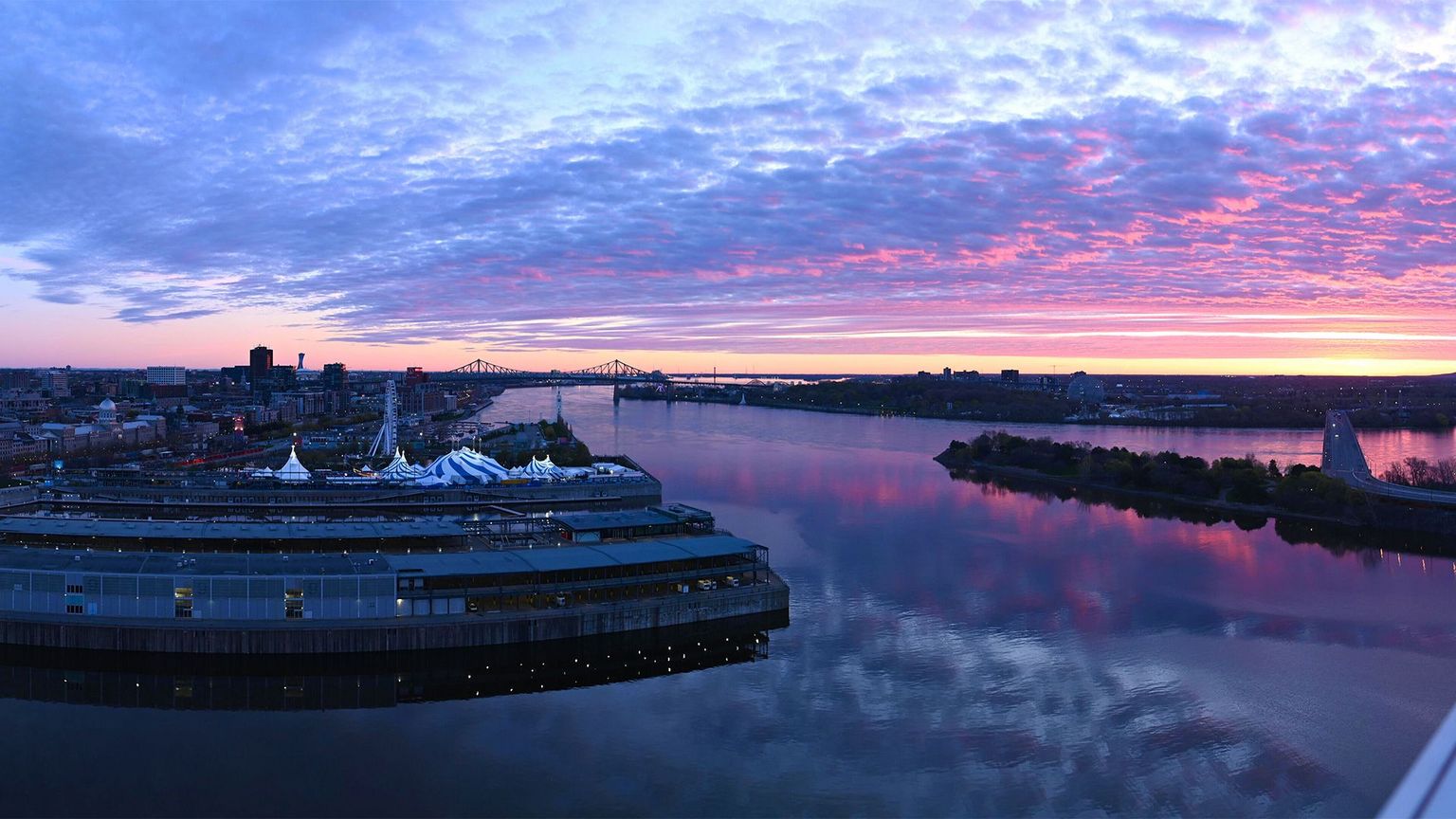 Les quais du port, les gratte-ciel de la ville, le Saint-Laurent, le pont Jacques-Cartier, l'île Sainte-Hélène et la biosphère… la vue et les points d’intérêt sont incroyablement variés.
