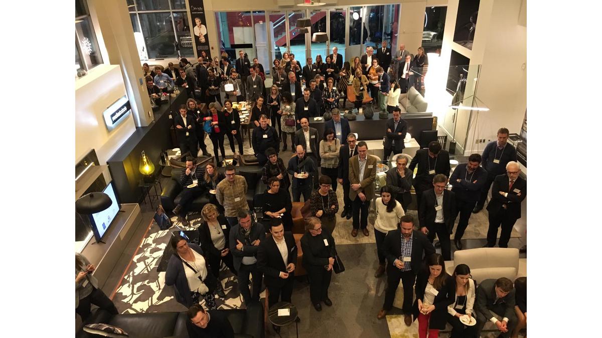 Cette soirée réseautage a démarrée dès 17h, avec la distribution de deux badges par personne, dont un destiné au tirage au sort pour gagner un lot de quatre chaises signé Roche Bobois. Une première partie réseautage au milieu de meubles, de lits et de canapés où il était possible de s'assoir, a contribué à créer une ambiance détendue.