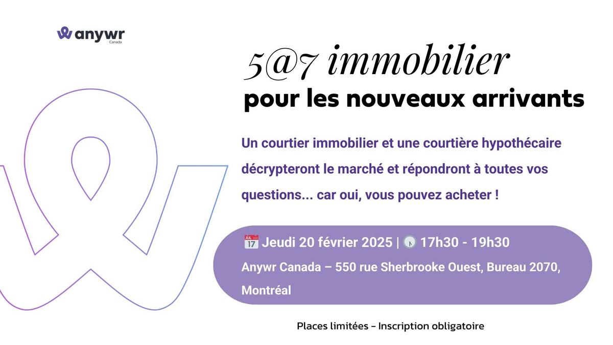 Soirée immobilier nouveaux arrivants jeudi 20 février - Anywr Canada