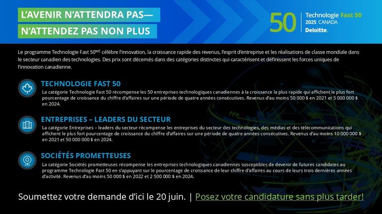 Déposez votre candidature au programme qui reconnait les entreprises en technologies ayant la plus forte croissance au Canada proposé par Deloitte !