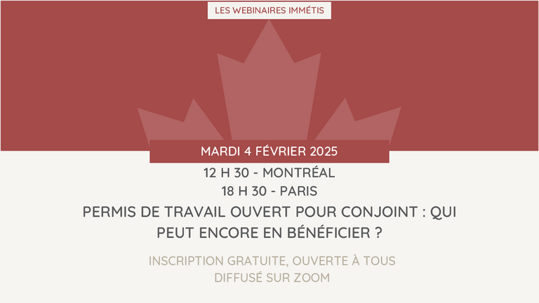 Ne manquez pas le webinaire le mardi 4 février sur l’admissibilité aux permis de travail ouverts pour conjoint !