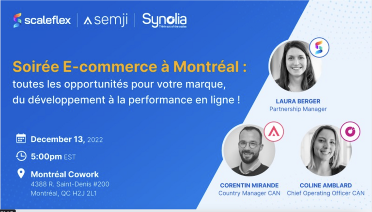 Semji, Synolia et Scaleflex vous invitent à leur soirée de réseautage 100% e-commerce et performance le 13 décembre à 17h au Montréal cowork !