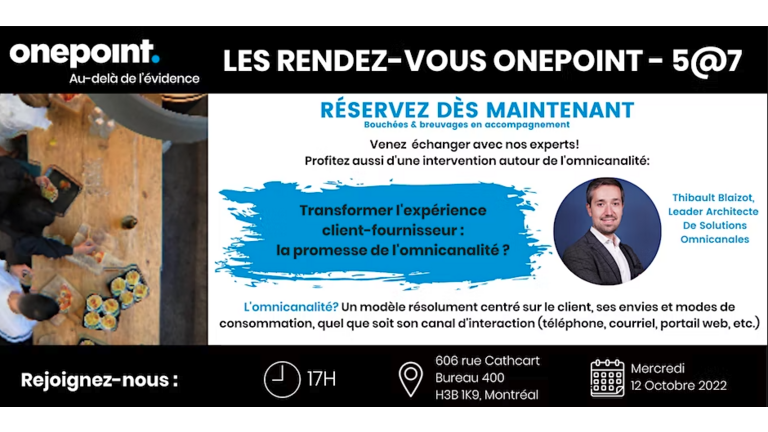 Transformer l'expérience client-fournisseur : la promesse de l'omnicanalité ? Participez au prochain événement de réseautage organisé par Onepoint !