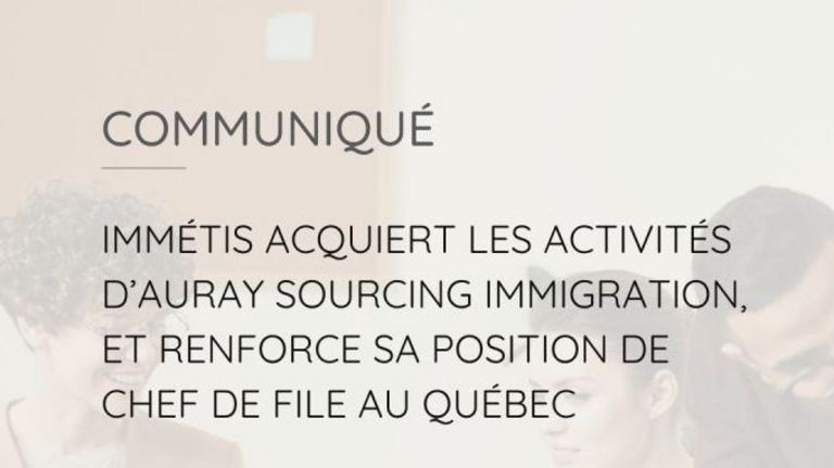 Communiqué | Immétis acquiert les activités d’AURAY Sourcing Immigration