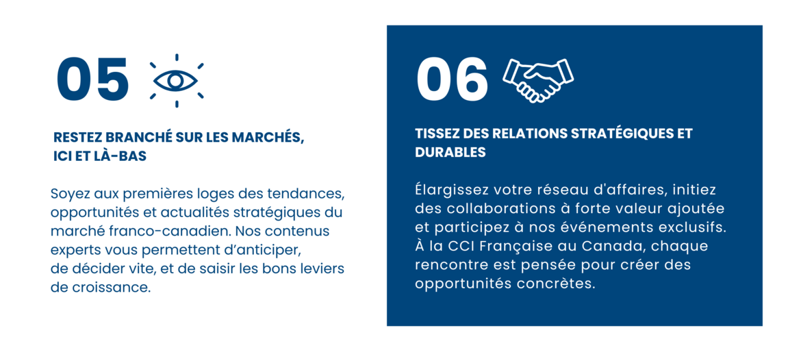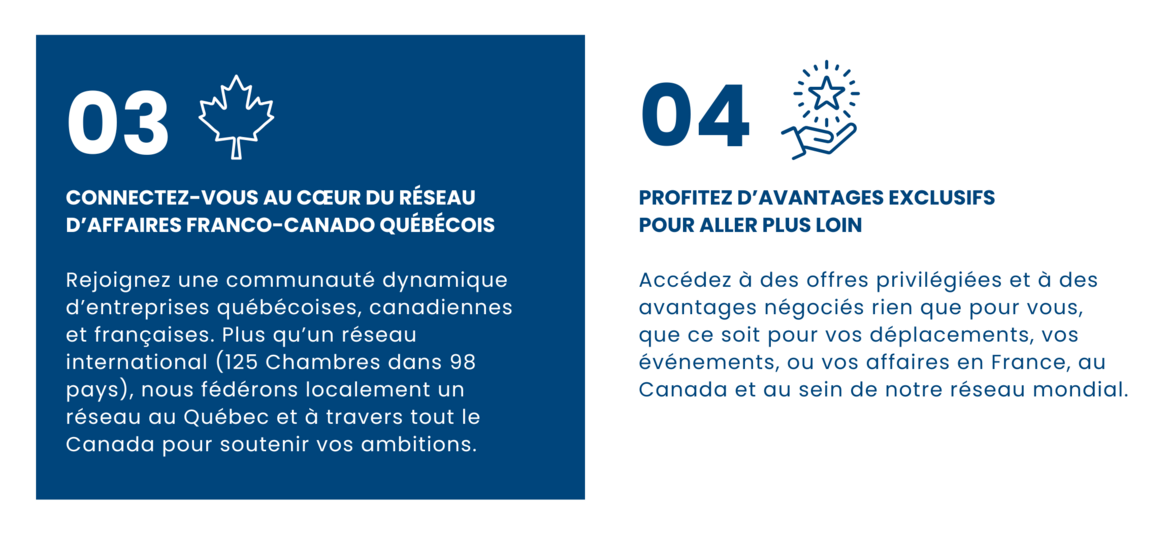 C’est aussi faire la différence en vous rapprochant au cœur de la communauté d’affaires franco-canado-québécoise !
