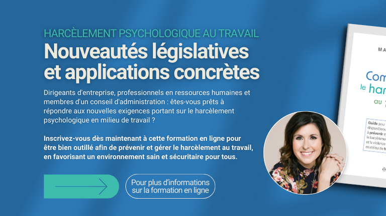 Profitez d'un tarif préférentiel en vous inscrivant dès maintenant à cette formation en ligne pour être bien outillé afin de prévenir et gérer le harcèlement au travail, en favorisant un environnement…