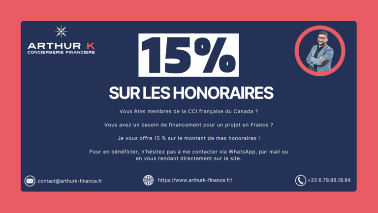 Arthur K Finance vous fait bénéficier de 15 % de remise sur leurs honoraires !