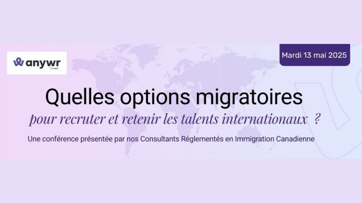 Anywr vous invite à une conférence 5@7 afin de vous partager les options qui existent pour recruter et retenir les talents internationaux !