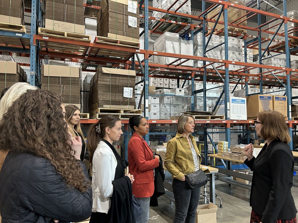 Après la pause déjeuner, la cohorte a continué son exploration avec une présentation de Medicom, un des principaux fabricants et distributeurs mondiaux de produits de haute qualité pour le contrôle des infections, à usage unique et préventifs (masques chirurgicaux, gants de protection, blouses, etc...), suivie d'une visite de leur usine Stinson.