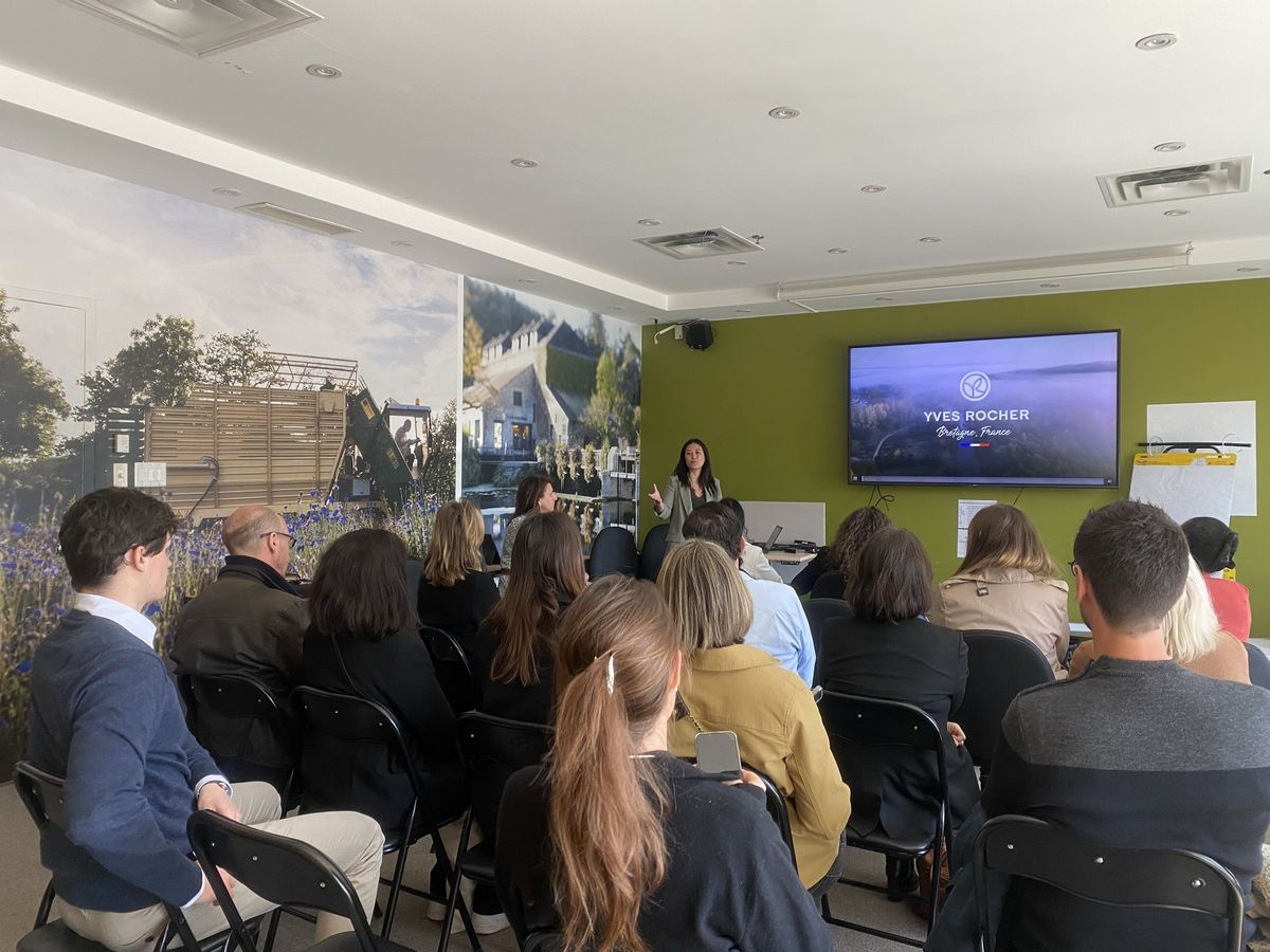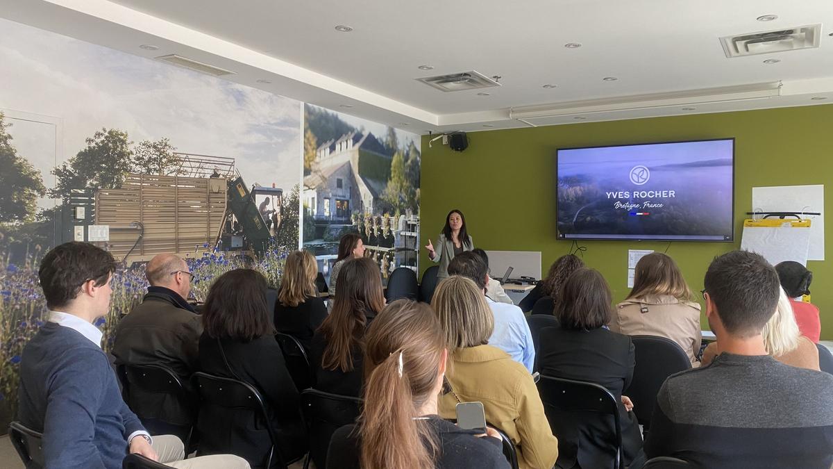 La journée a commencé par une visite et une présentation de l'entreprise Yves Rocher, pionniers de la cosmétique botanique.