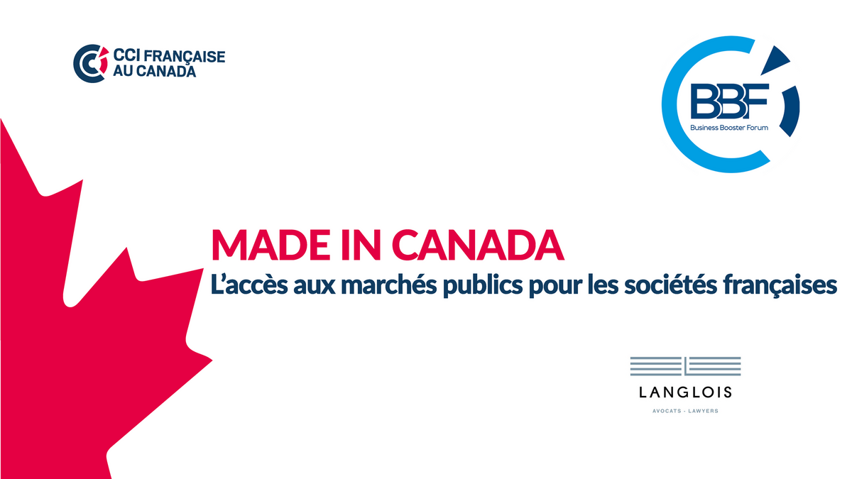 Le 11 mars, la CCI Française au Canada a choisi de s'associer au cabinet d'avocats Langlois pour un webinaire sur les opportunités d’affaires que représentent les marchés publics et comment y répondre. Puis, une partie sur le secteur des infrastructures et de la construction, avec pour toile de fond les contrats du Comité canadien des documents de construction et les facteurs de risques stratégiques et économiques y afférent.