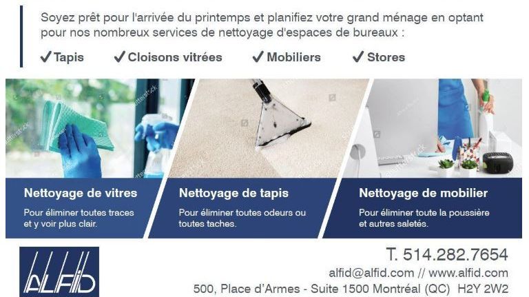 Faites place à la propreté, confiez votre grand ménage du printemps au service d'entretien Alfid Services Immobiliers Ltée. Nous vous offrons une…