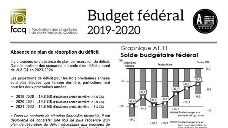 Nouveau budget fédéral et prévisions fiscales pour l'année 2019-2020