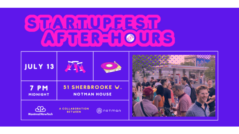 Le 13 juillet, participez à l'événement Startupfest After-hours à partir de 19h