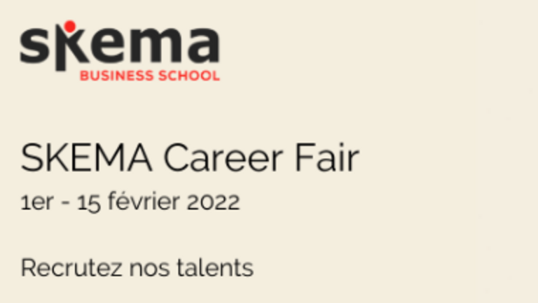 SKEMA Business School a le plaisir de vous inviter à son prochain forum de recrutement organisé du 1er au 15 février 2022 sous format digital.