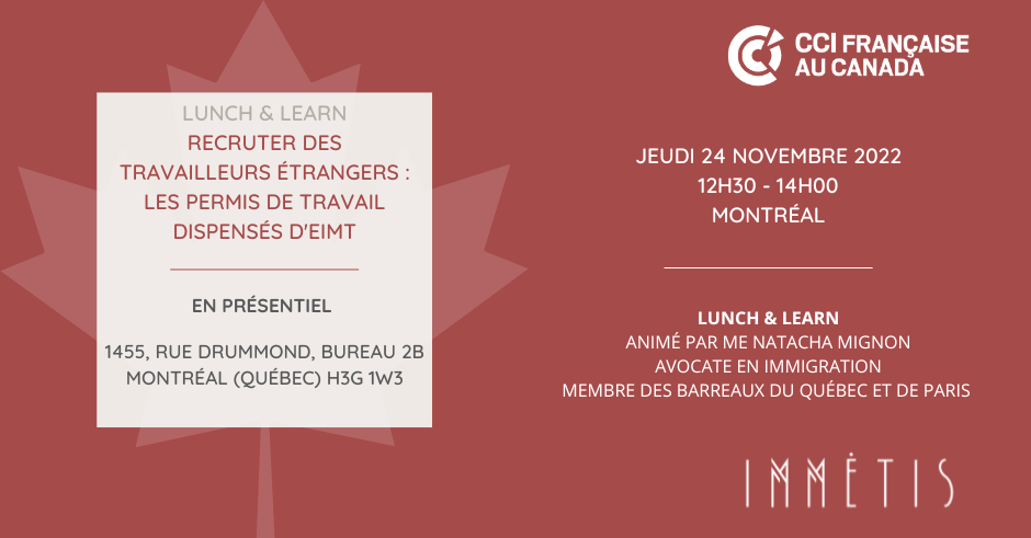 La CCI Française au Canada s'associe au Cabinet d'Immigration Immétis pour offrir un Lunch & Learn sur le recrutement de talents à l'international !