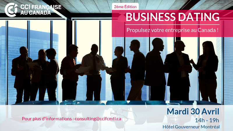Devant le succès de la 1ère édition du Business Dating, la CCI Française au Canada reconduit cet évènement d’une demi-journée de réseautage, de rencontres B to B et d’apport d’informations par des experts, qui vous apporteront un éclairage et des réponses à vos problématiques entrepreneuriales.