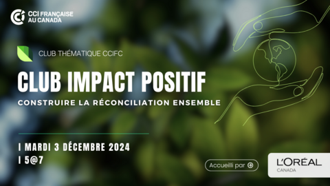 La CCI Française au Canada propose aux membres du Club Impact Positif de participer à une nouvelle session le mardi 3 décembre !