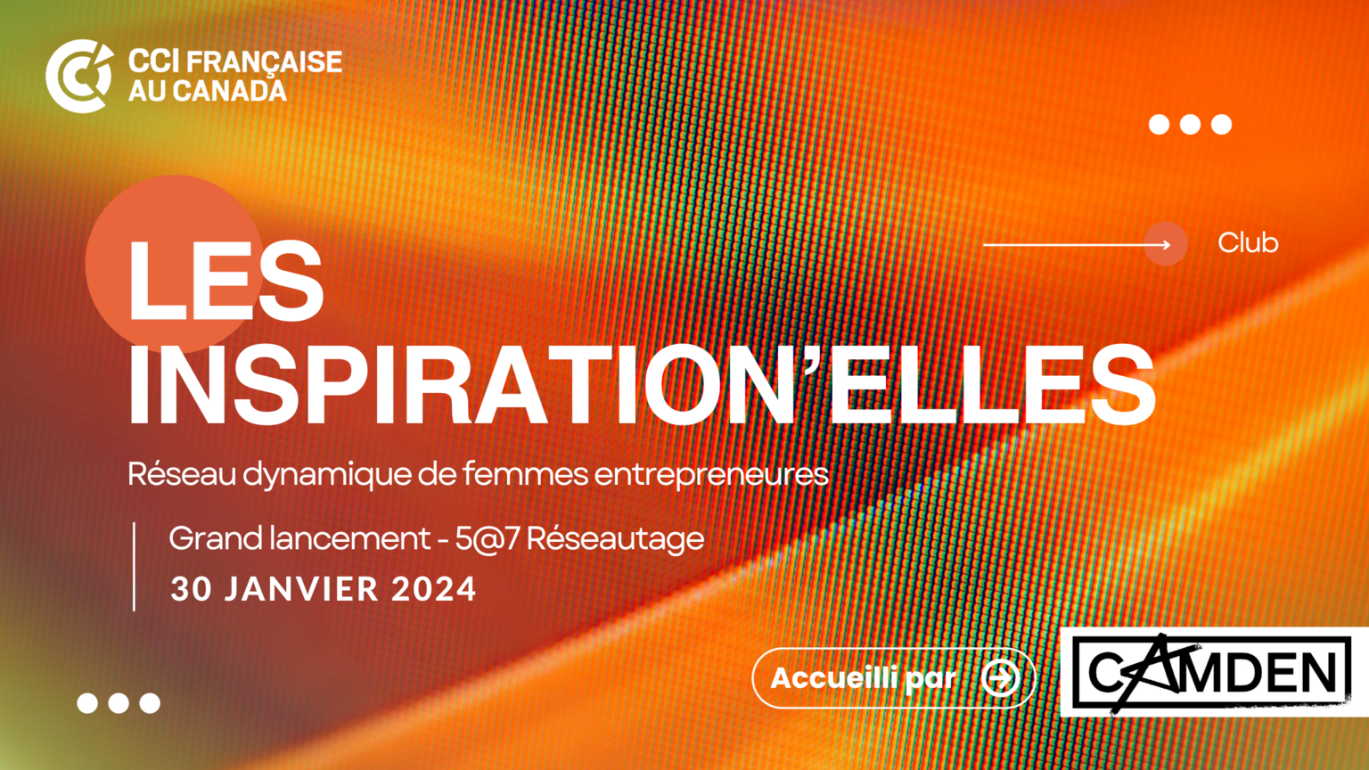 Retrouvez-nous le mardi 30 janvier sous un format 5@7 pour la grande session de lancement de notre Club Femmes Entrepreneures - Les Inspiration’elles, accueilli par Camden.