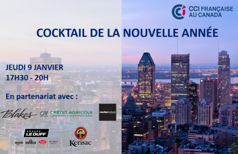 Nous vous donnons rendez-vous le Jeudi 9 janvier de 17h30 à 20h pour réseauter lors de cette soirée cocktail.