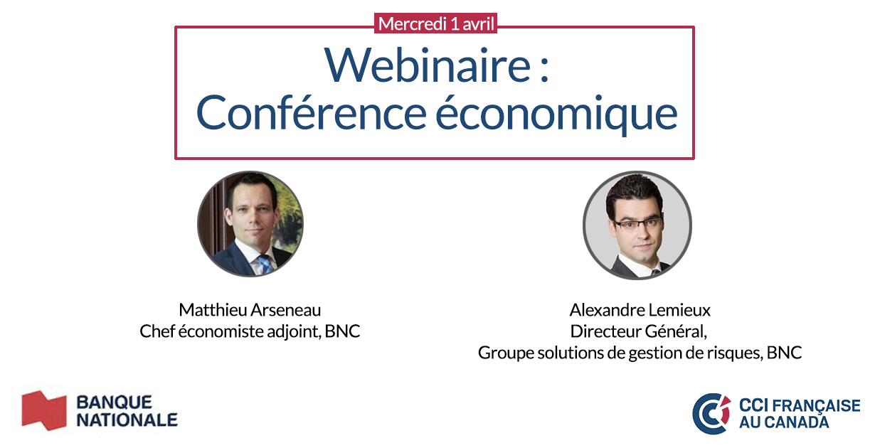 Ouvert à tous: Venez assister à la conférence économique virtuelle organisée par la Banque Nationale du Canada et présentée par Matthieu Arseneau et Alexandre Lemieux, Directeurs Généraux de la BNC.
