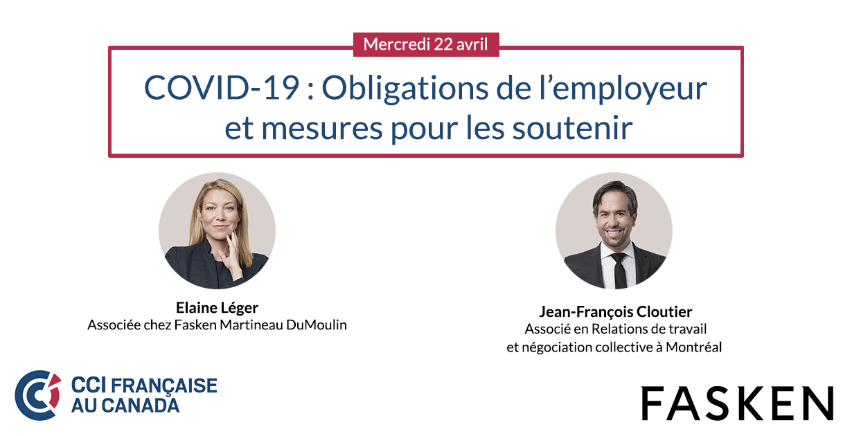 Restez informés et venez poser vos questions aux experts en droit du travail de Fasken lors de ce webinaire adressé aux employeurs.