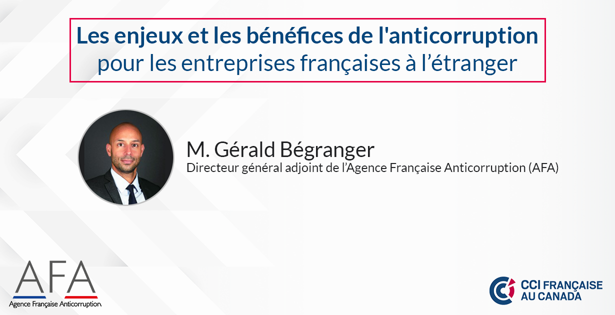 M. Gérald Bégranger, directeur général adjoint de l’Agence Française Anticorruption (AFA) répondra à toutes ces questions légitimes que vous vous posez dans le cadre de vos activités et de celles de vos collaborateurs.