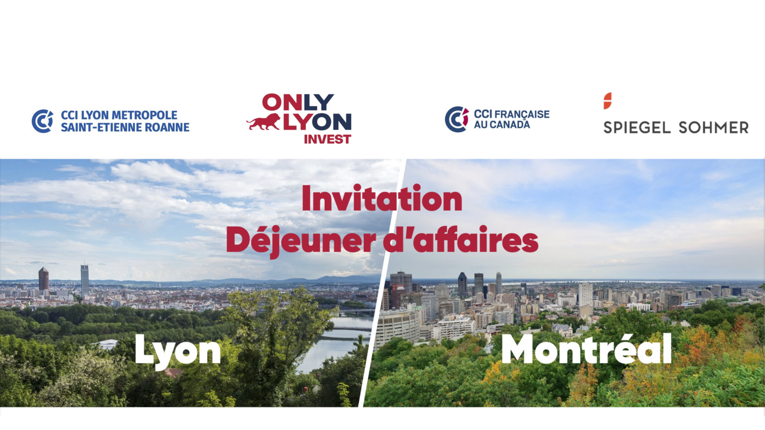 L'ADERLY - Invest in Lyon et la CCI Lyon Métropole Saint-Étienne Roanne, en partenariat avec la CCI Française au Canada et Spiegel Sohmer ont le plaisir de vous inviter à un déjeuner d'affaires.