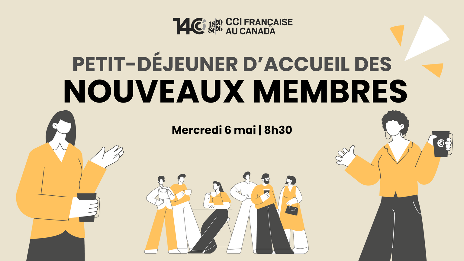 Profitez de l'occasion pour présenter votre entreprise devant notre communauté d'affaires franco-canadienne et venez échanger avec d'autres membres de la CCIFC lors de ce petit-déjeuner d'accueil en présentiel.
