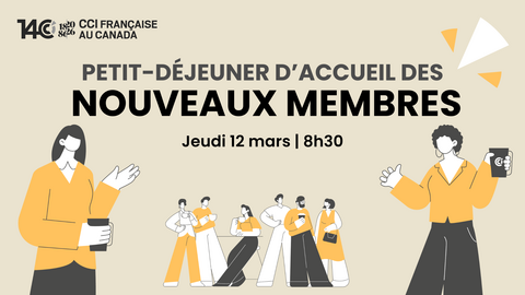 Profitez de l'occasion pour présenter votre entreprise devant notre communauté d'affaires franco-canadienne et venez échanger avec d'autres membres de la CCIFC lors de ce petit-déjeuner d'accueil en présentiel.