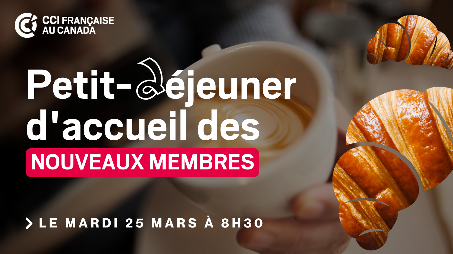Profitez de l'occasion pour présenter votre entreprise devant notre communauté d'affaires franco-canadienne et venez échanger avec d'autres membres de la CCIFC lors de ce petit-déjeuner d'accueil en présentiel.