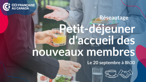 Profitez de l'occasion pour présenter votre entreprise devant notre communauté d'affaires franco-canadiennes et venez échanger avec d'autres membres de la CCIFC lors de ce petit-déjeuner d'accueil des nouveaux membres.