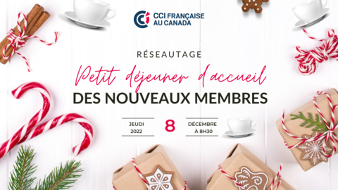 Profitez de l'occasion pour présenter votre entreprise devant notre communauté d'affaires franco-canadienne et venez échanger avec d'autres membres de la CCIFC lors de ce petit-déjeuner d'accueil de fin d'année.