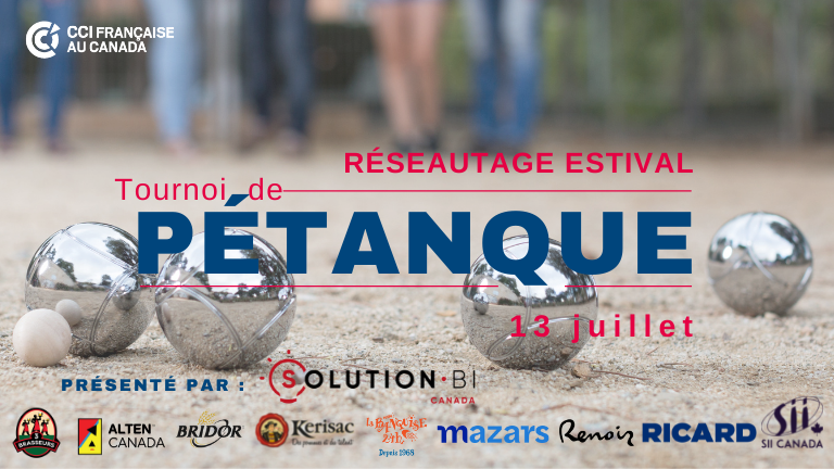 La 7ème édition du tournoi de pétanque de la CCIFC vous attend le mercredi 13 juillet de 5@9 au Parc Lafontaine, pour un cocktail et réseautage convivial rassemblant la communauté d'affaires franco-canadienne.