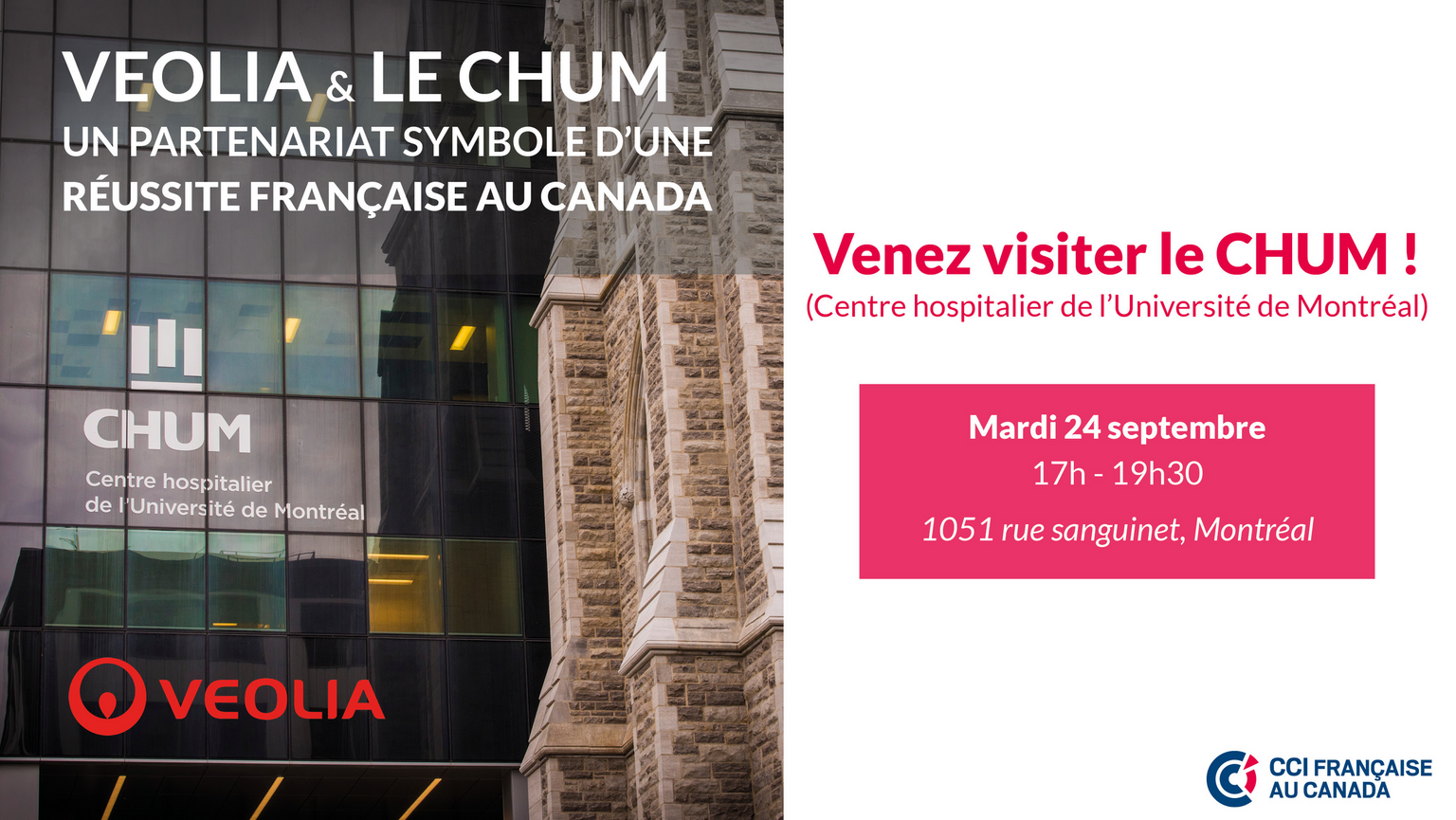 | 17:15 - 19:00 | Présentation du CHUM et de son contrat avec Veolia puis début de la visite par groupe |
