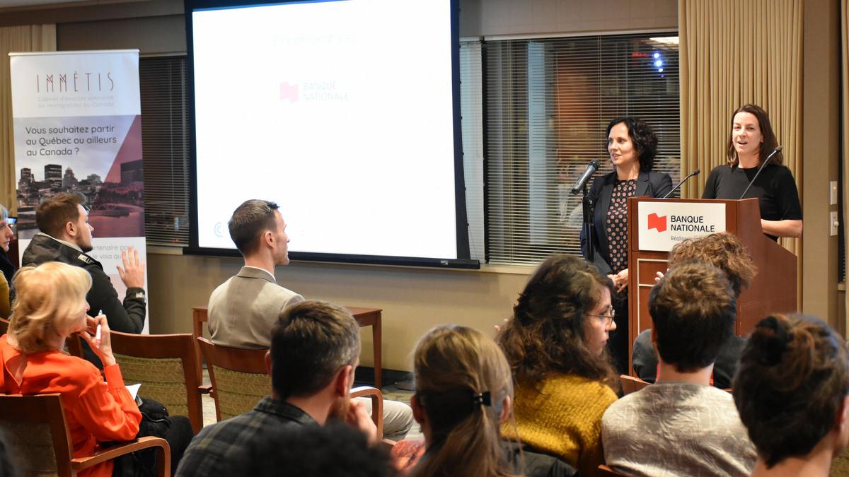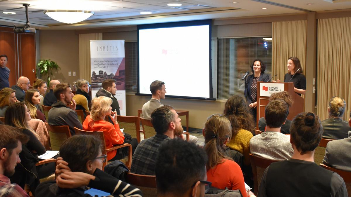 Maître Natacha Mignon et Monsieur Marc-André Ranger du cabinet IMMETIS Services juridiques, nous ont dressé le panorama des possibilités pour passer d’une immigration temporaire à une résidence permanente. La conférence a débuté en abordant l’aspect des permis de travail.