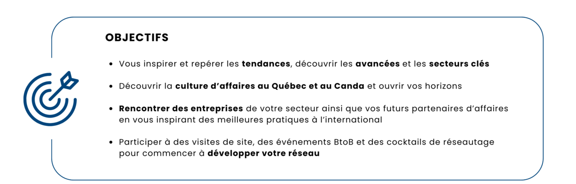 En ligne ou en présentiel, les participants à la mission seront en immersion professionnelle et prendront part à des visites et échanges avec des acteurs clés d’un secteur afin de découvrir et comprendre le fonctionnement des entreprises locales.
